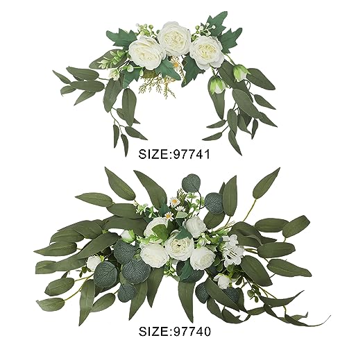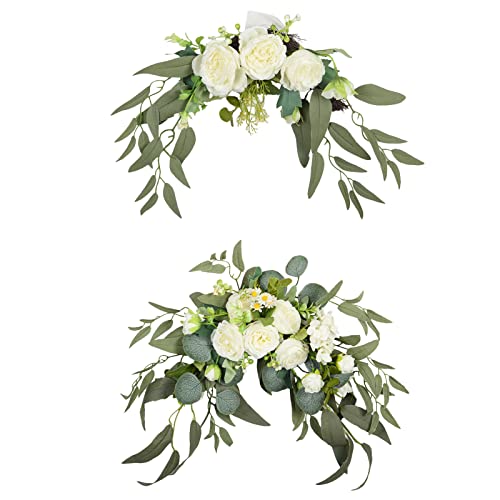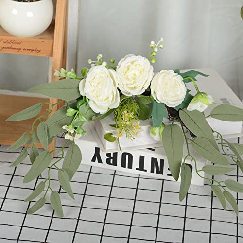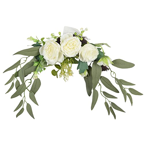 MOTUZP 15.7inch Floral Swag, White Mixed Spring Floral Sw Door Lintel Decorative Swag, Wedding Arch Flower for Home Garden Decor Home Garden Decor with Peony Flowers and Eucalyptus Leaves, Front