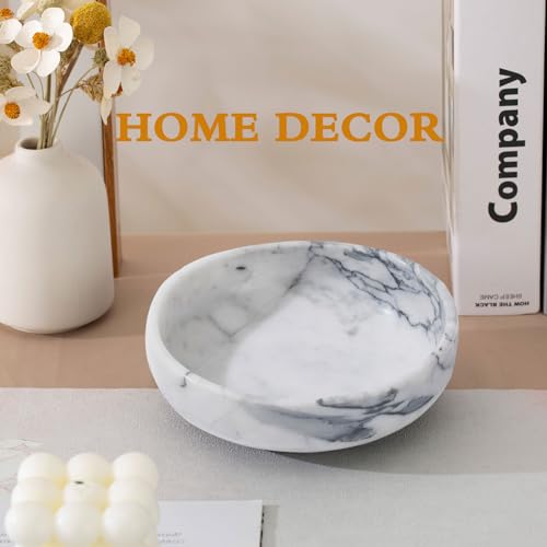 6.7″ Large Decorative Bowl, Natural Marble Decorative Bowls for Home Decor, Key Bowl, Candy Bowl, Smudge Bowl, Coffee Tables Centerpiece (White&Grey)
