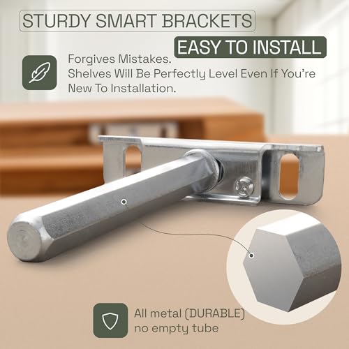 Easy installation — set of 2 natural wood shelves for wall come with stainless-steel hidden brackets, toggle bolts for drywall & a simple instruction manual.