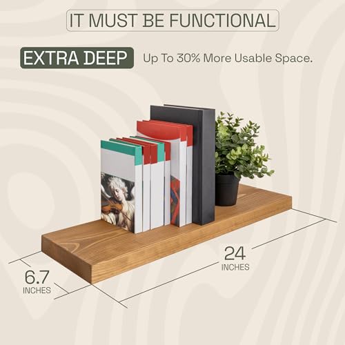 BAOBAB WORKSHOP Natural Wood Floating Shelves 24 inches Long – Deep Wall Shelves for Bedroom – Bathroom Shelves for Room Wall – Kitchen Floating Shelf – Gold Oak Shelves – 24D x 6.7W