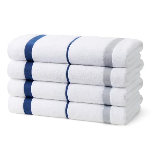 Ben Kaufman – Terry Horizontal Sailor Stripes Beach Pool Towels – Set of 4 Pcs – 30in X 60in – 400 GSM – Luxury Hotel Towels 4-Pack (Navy)