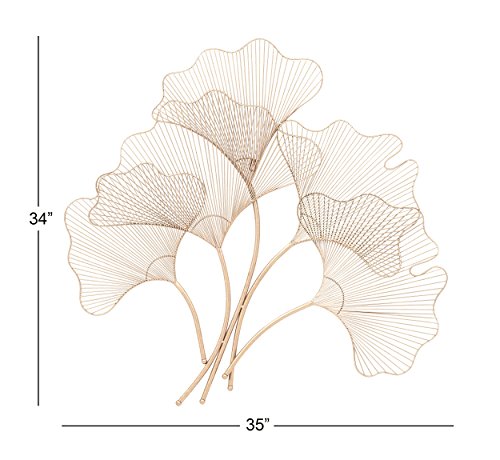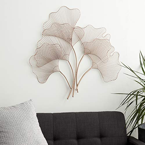 Deco 79 Metal Floral Home Wall Decor Ginkgo Leaf Wire Wall Sculpture, Wall Art 35″ x 1″ x 34″, Copper