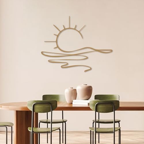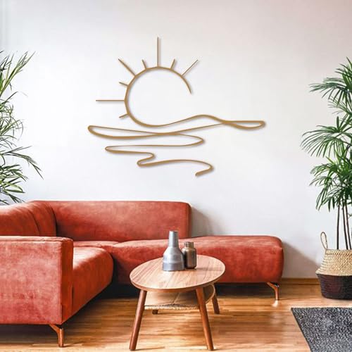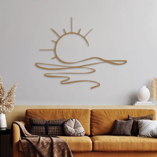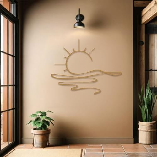 DEKORARTX Sunrise Metal Wall Art, Gold Sun Sparkle Wall Decor, Minimalist Line Art, Sunrise Wall Hanging for Living Room, Bedroom, Outdoor, Housewarming Gift (18” x 14” | 45 x 36 cm)