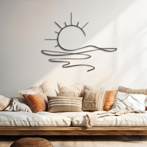 DEKORARTX Sunrise Metal Wall Decor, Black Sun Sparkle Wall Decor, Minimalist Line Art, Sunrise Wall Hanging for Living Room, Bedroom, Outdoor, Housewarming Gift (35” x 28” | 90 x 72 cm)