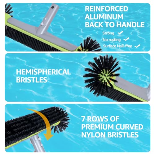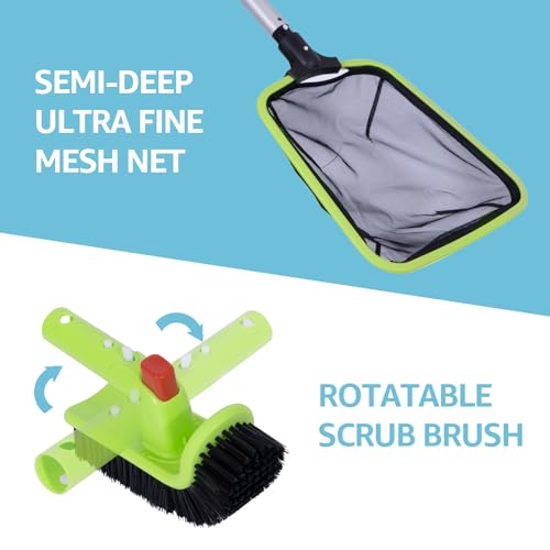 [Keep your pool clean with ease] This kit includes a Professional pool net, semi-deep skimmer net,heavy-duty 17.5″ round pool brush head, and a rotatable scrub brush.