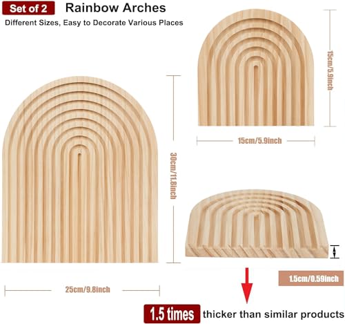 Reliable Material: Made from pine wood material which is a strong material with a close grain, making this cute boho accent decor perfect for household goods, this rainbow arches board is strong and long-lasting, and can be preserved as exquisite family decoration for a long time