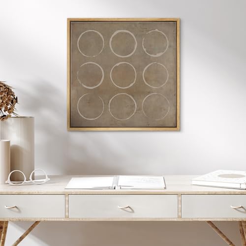 SIGNWIN Framed Canvas Print Wall Art Geometric Minimal Circle Spiral Pattern Abstract Shapes Illustration Modern Art Decorative Boho Relax/Zen for Living Room, Bedroom, Office – 16″x16″ Natural