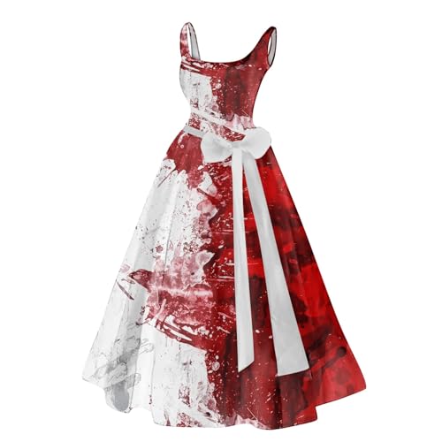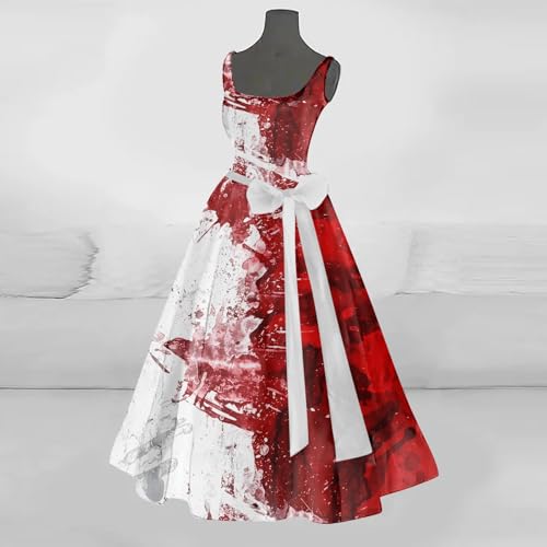 Halloween Costumes for Women Plus Size Scary Bloody Printed Gothic Skeleton Sleeveless Dress Cosplay Party Clothes