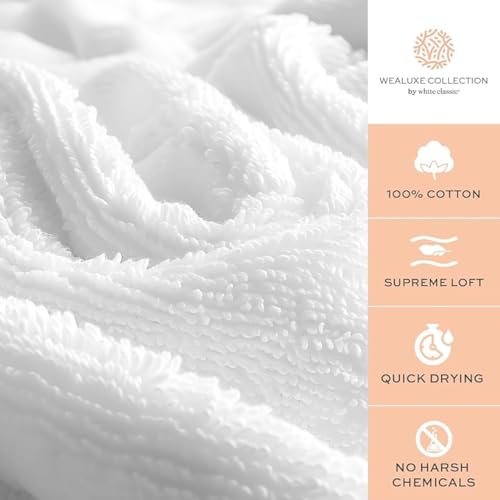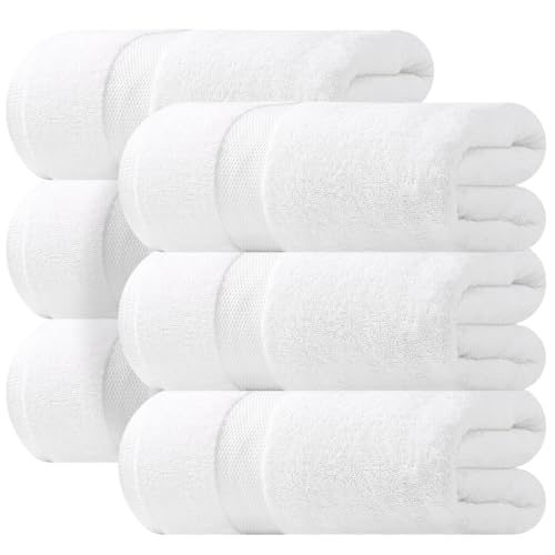 Wealuxe White Bath Towels 24×50 Inch, Cotton Towel Set for Bathroom, Hotel, Gym, Spa, Soft Extra Absorbent Quick Dry 6 Pack