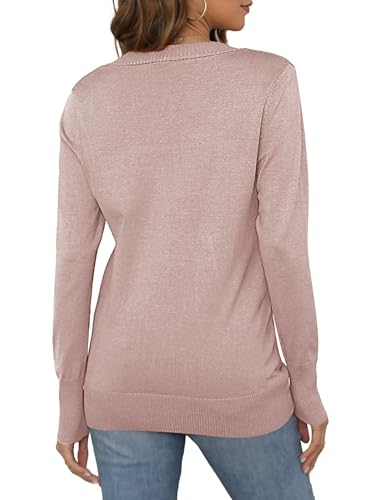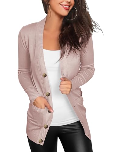 Women Long Sleeve Snaps Button Down V Neck Cute Knit Sweater Cardigan