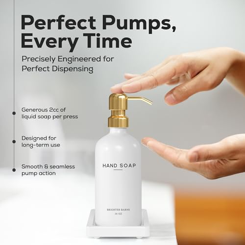 AMERICAN DESIGN, UNCOMPROMISING QUALITY – Crafted with meticulous attention to detail, our aesthetic glass soap dispenser with pump set features 2 robust 16oz glass bottles, corrosion-proof 304G stainless steel pumps, and a stain-resistant ceramic tray. All designed in the USA to provide unbeatable quality and enduring style that you can trust.