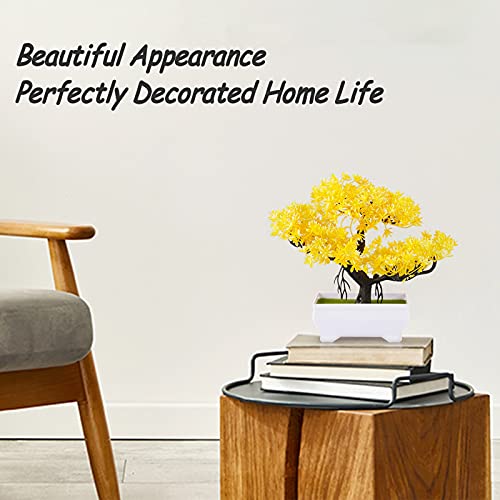 Mini Artificial Bonsai Tree Plants with Plastic Cement Pots for Home Office Décor (Yellow)