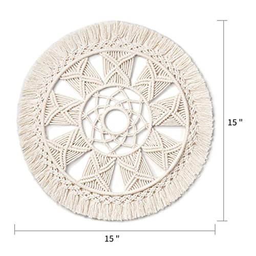Dahey Macrame Wall Hanging Woven Tapestry Wall Art Wreath Chic Boho Decor Christmas Day Gift Festival Mandala for Apartment Home Bedroom Living Room, 15″