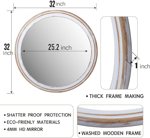 Perfect Size: Reflinto’s White Wash Round Circle Frame Wall Mirror has an oversized 32″diameter, making it the perfect size for any wall in your house. This size mirror is sure to grab the attention of anyone who sees it.