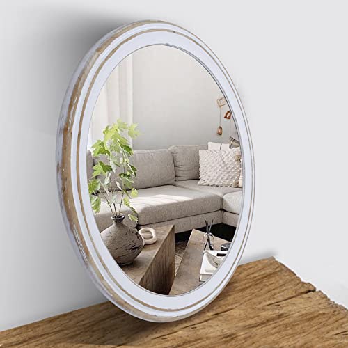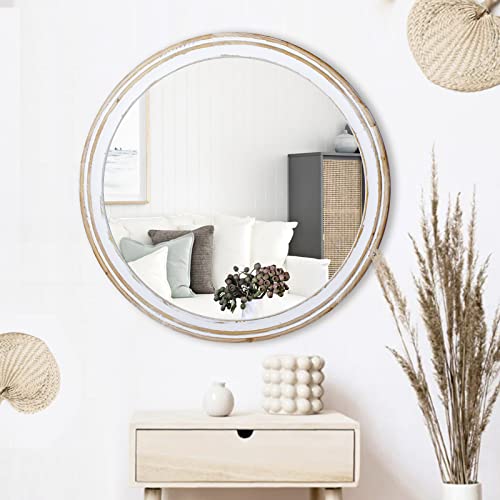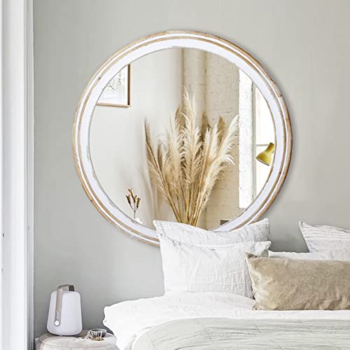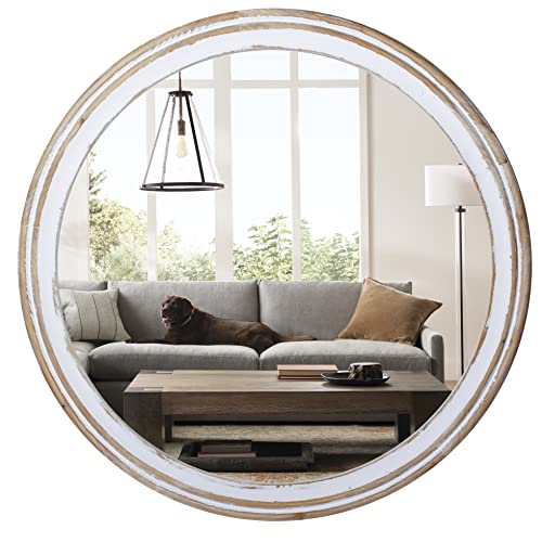 Reflinto 32 Inches Farmhouse Decorative Round Mirrors for Wall Decor, Rustic Distressed Wooden Circle Mirror for Bathroom Over Sink, Entryway, Living Room, Vanity