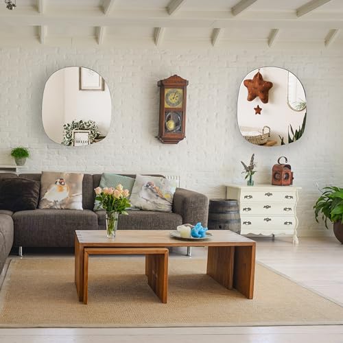 EDGEWOOD Asymmetrical Accent Wall Mounted Irregular Oval Mirror Decor for Living Room Bedroom Entryway, Small Size 19.7 x 20.5 Inches