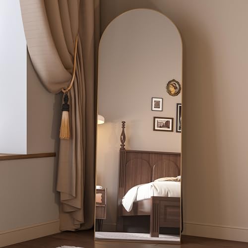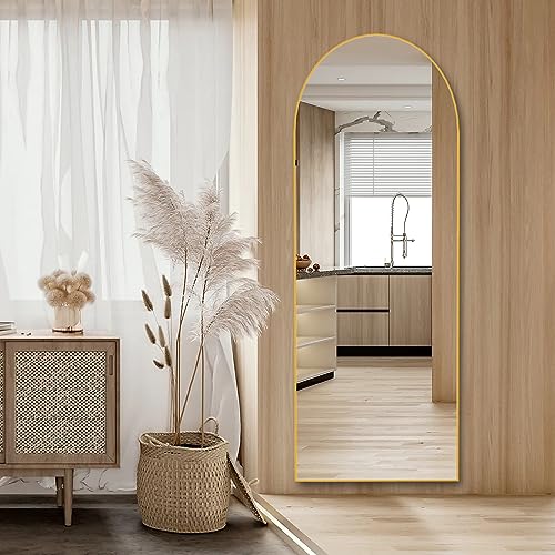 CONGUILIAO 64″x21″ Full Length Mirror, Arched Floor, Full Body, Aluminum Frame Wall Mounted Dressing for Bedroom, Gold