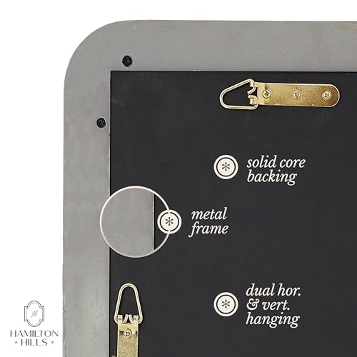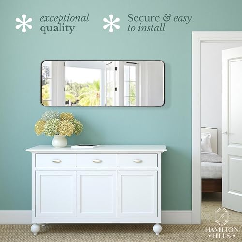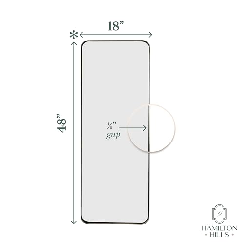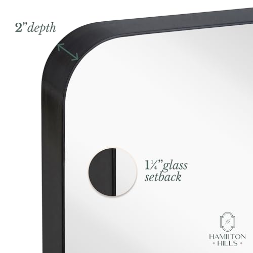 Hamilton Hills 18×48 inch Metal Black Frame Mirror for Bathroom | Brushed Rectangular Tall Rounded Corner Vanity | 2″ Deep Set Design Wall Mirrors Decorative | Hangs Horizontal and Vertical