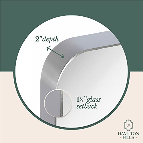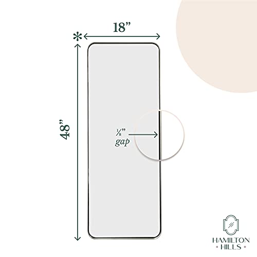 Hamilton Hills 18×48 inch Metal Silver Frame Mirror for Bathroom | Brushed Rectangular Tall Rounded Corner Vanity | 2″ Deep Set Design Wall Mirrors Decorative | Hangs Horizontal and Vertical