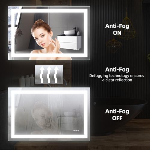 LED Bathroom Mirror with Front and Backlit Lights,48 x 32 Inch Anti-Fog Lighted Vanity Mirror, Stepless Dimmable, 3-Color Modes, Horizontal/Vertical Makeup Mirror