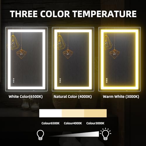 【Easy installation】 The corners of the mirror are protected, filled with white foam in the package, anti-falling and anti-scratching. It can reduce damage during transportation. The led mirrors have also passed all tests including dropping test, impact test, heavy pressure test etc. Screw mount included, easy to install.