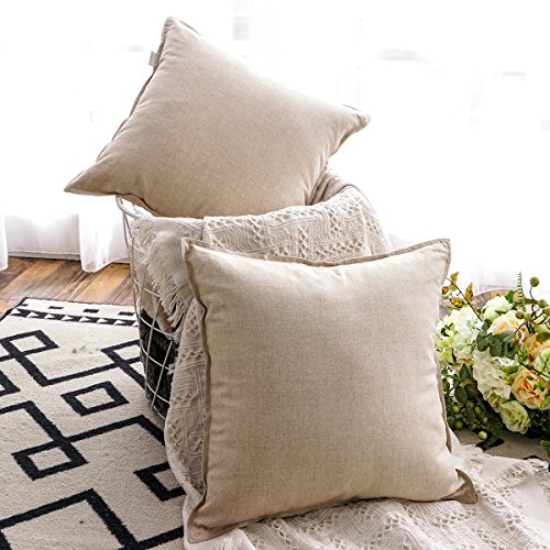 Jeanerlor Set of 2 20″x20″ Yellow Pillowcase with Zipper Cousion Cover Decor Cotton Linen to Embellish Students’ Dormitory/Study Room/House/Office,(50 x 50cm), Light Linen