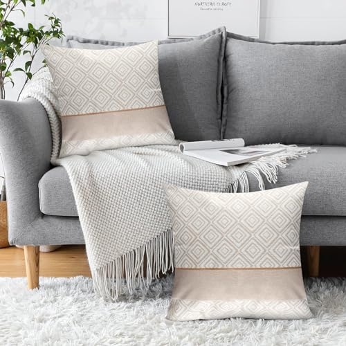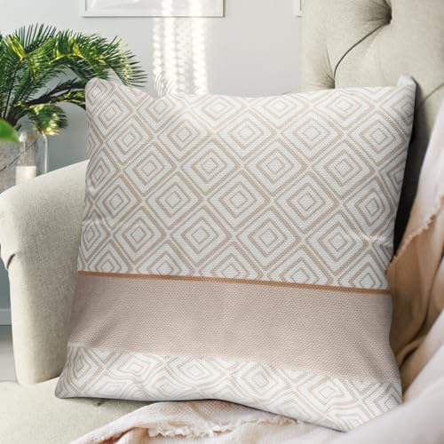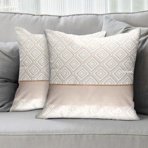 Pack of 2 Decorative Throw Pillow Covers – 18×18 Inch, Soft Lozenge Pattern Striped, Modern Farmhouse Decor, Perfect for Sofa, Living Room, Bed – Cream White