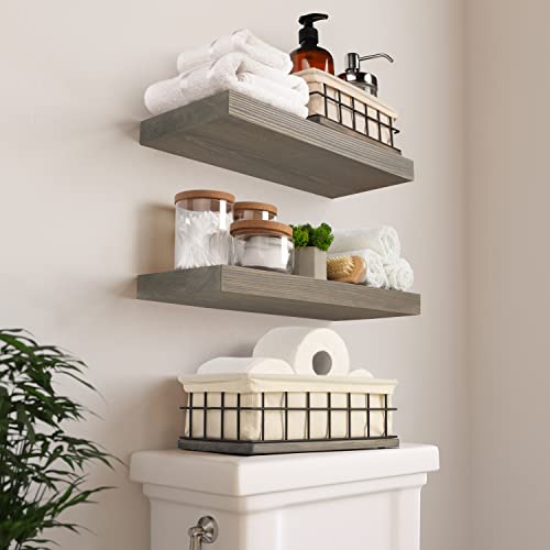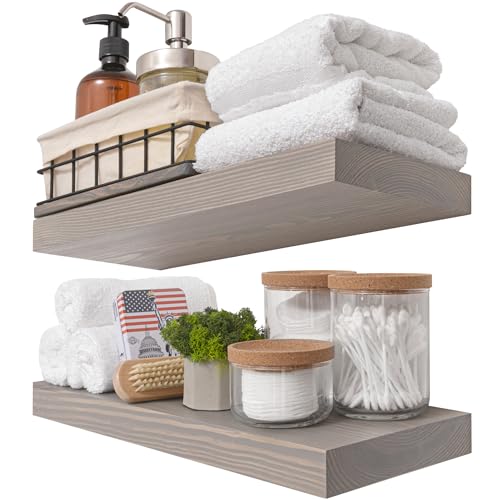BAOBAB WORKSHOP Wood Floating Shelves for Wall – Rustic Shelf 16 inch – Grey Bathroom Shelves – Solid Wood Shelves for Wall for Bedroom Kitchen Living Room – Gray Finish, 16â³ W Ã 6.7â³ D, Set of 2
