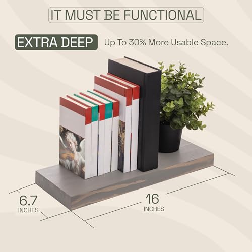 ✔INCREDIBLE STORAGE & DECOR — Exhibit memorabilia or artwork, store books & jazz up your kitchen, bathroom and more with gray floating shelves for wall!