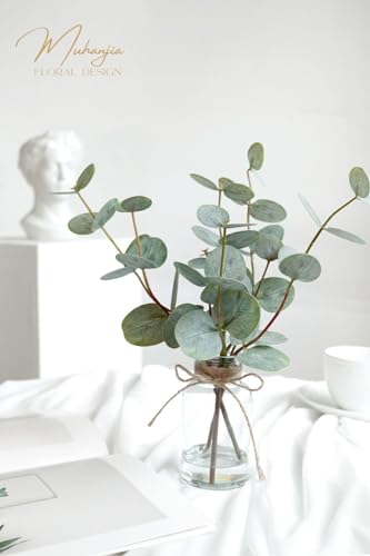 💗【Realistic eucalyptus leaves】Green eucalyptus leaves have the same characteristics on both sides, feeling smooth and realistic. The leaves are made from premium-quality plastic with wired stems, and they boast realistic-looking, intricate vein detailing.The beauty of eucalyptus leaves can be appreciated from any direction.This unique combination will add vitality to your home decor.