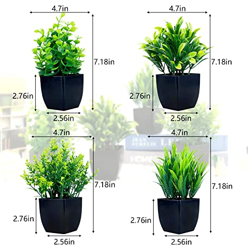 GREENTIME 4 Pack Fake Plants in Black Pot,Mini Artificial Eucalyptus Potted Plant,Small Faux Grass Greenery Potted Plants for Indoor Home Office Farmhouse Bathroom Table Decoration