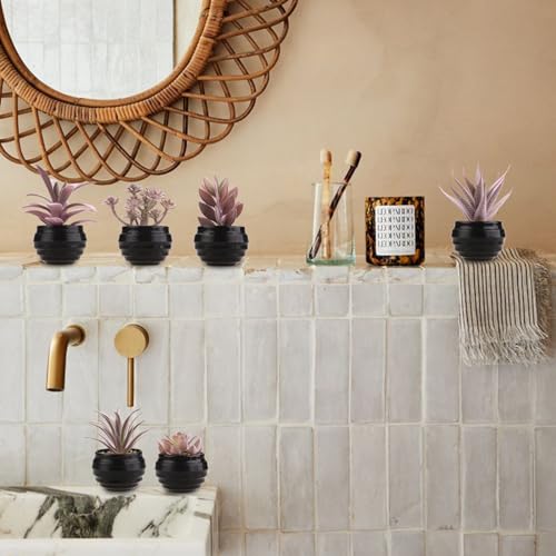 GREENTIME Set of 6 Fake Succulent Plants in Black Pot Artificial Mini Potted Plants Small Faux Desk Plants for Indoor Home Office Bathroom Shelf Table Birthday Decoration(Pink Purple)