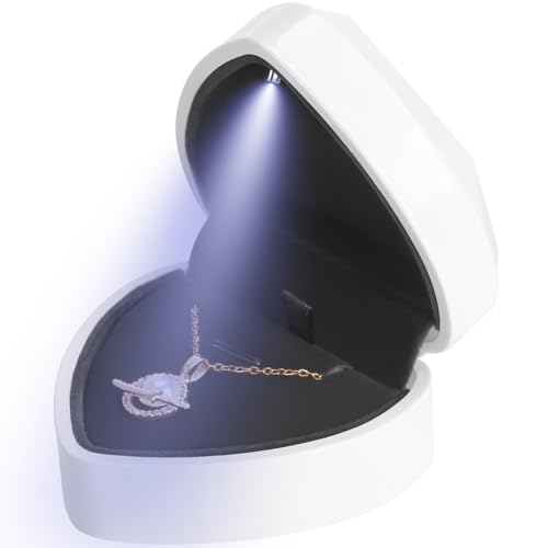 LETURE Heart Shaped LED Pendant Necklace Box, Jewelry Gift Boxes for Bracelet Bracelets, Small Jewelry Display with Light for Proposal Engagement Wedding Valentine’s Day (White)