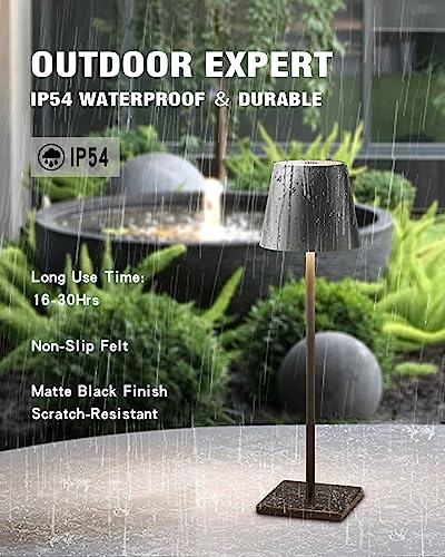 【Professional IP54 Waterproof Outdoor Lamp】The outdoor table lamp with completely closed structure, which can against water penetration well. After strictly tested, the professional waterproof cordless lamp guarantee full functionality even when it rains. Besides, with its weight the small table lamp can be tilt proof during a sudden wind. Never need to worry for outdoor use.