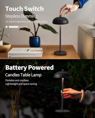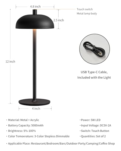 NEWSEE Cordless LED 12″ Small Table Lamps Set of 2, Modern Portable Desk Lamp, 3 Color Dimming Rechargeable Battery Lights for Bedroom, Outdoor, Restaurant, Bedside, Baby Night Light, Gifts (Black)