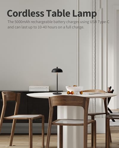 【Cordless design】 Simple cordless design, without the hassle of tangled cords, it doesn’t take up visual space on the table. Moderate weight and size, can be picked up and placed elsewhere at any time. Half-circle arc lampshade design neutralizes the straight lines of the lamp body, enriches the overall aesthetics of the lamp, and is more dexterous and versatile. You can place it on your desktop, bookshelf, entryway, bedside and anywhere else you need it.